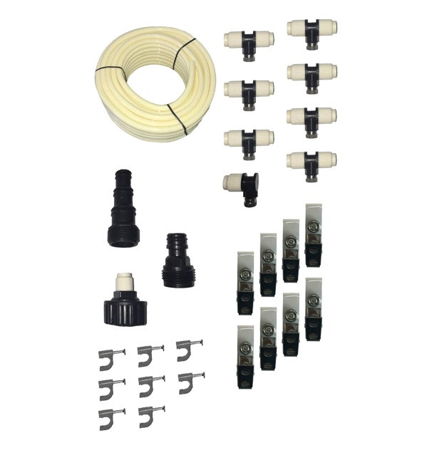ست مه پاش 15 متری مدل BCMK-50 آب را پودر می‌کند و منجر به خنک شدن دمای هوا بین 6 الی 10 درجه می گردد و دارای 15 متر شیلنگ، 8 عدد نازل، گیره نگهدارنده، بست و تبدیل برای اتصال به شیرآب و لوله می باشد